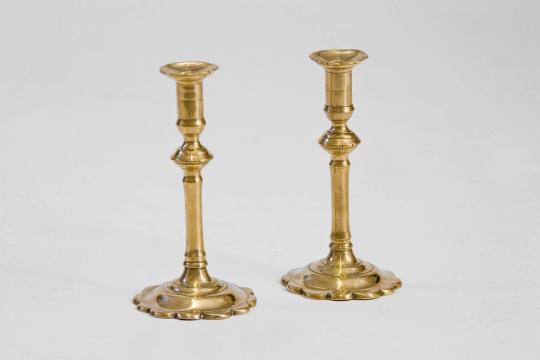 > Pair of Brass Queen Anne Candlesticks (SOLD)