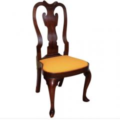 An elegantly constructed Queen Anne side chair with yoke crest, solid spooned splat and cabriole legs terminating in slipper feet.