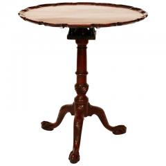 18th century mahogany English piecrust tea table with spiral urn pedestal cabriole legs with raised carving on the knees and terminating in claw and ball feet