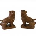 A life size pair of beautifully rendered ceramic recumbent French bull dogs. Their casts were finely carved and show considerable detail on the hair, face, collar and pedestal.